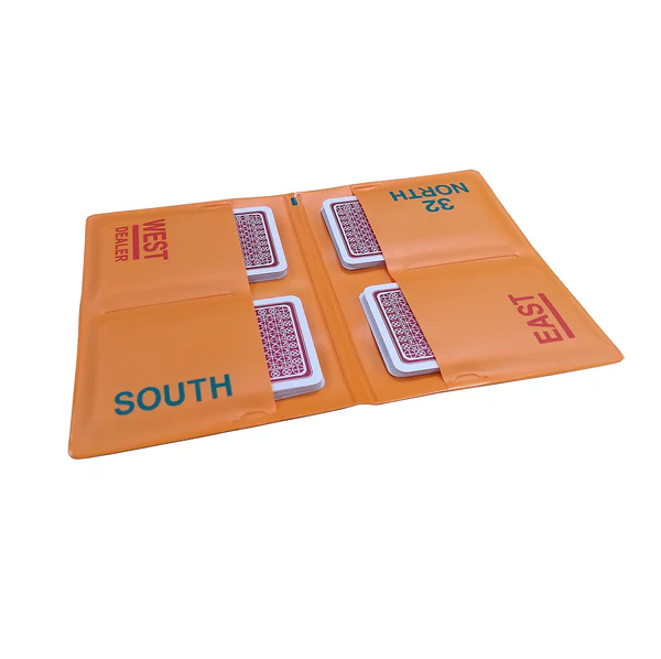 Sett með 8 númeruðum duplicate bridge PVC veskjum. Auðveld í notkun með skýrum merkingum og tölum, fullkomin fyrir bridge heima fyrir eða á mótum.