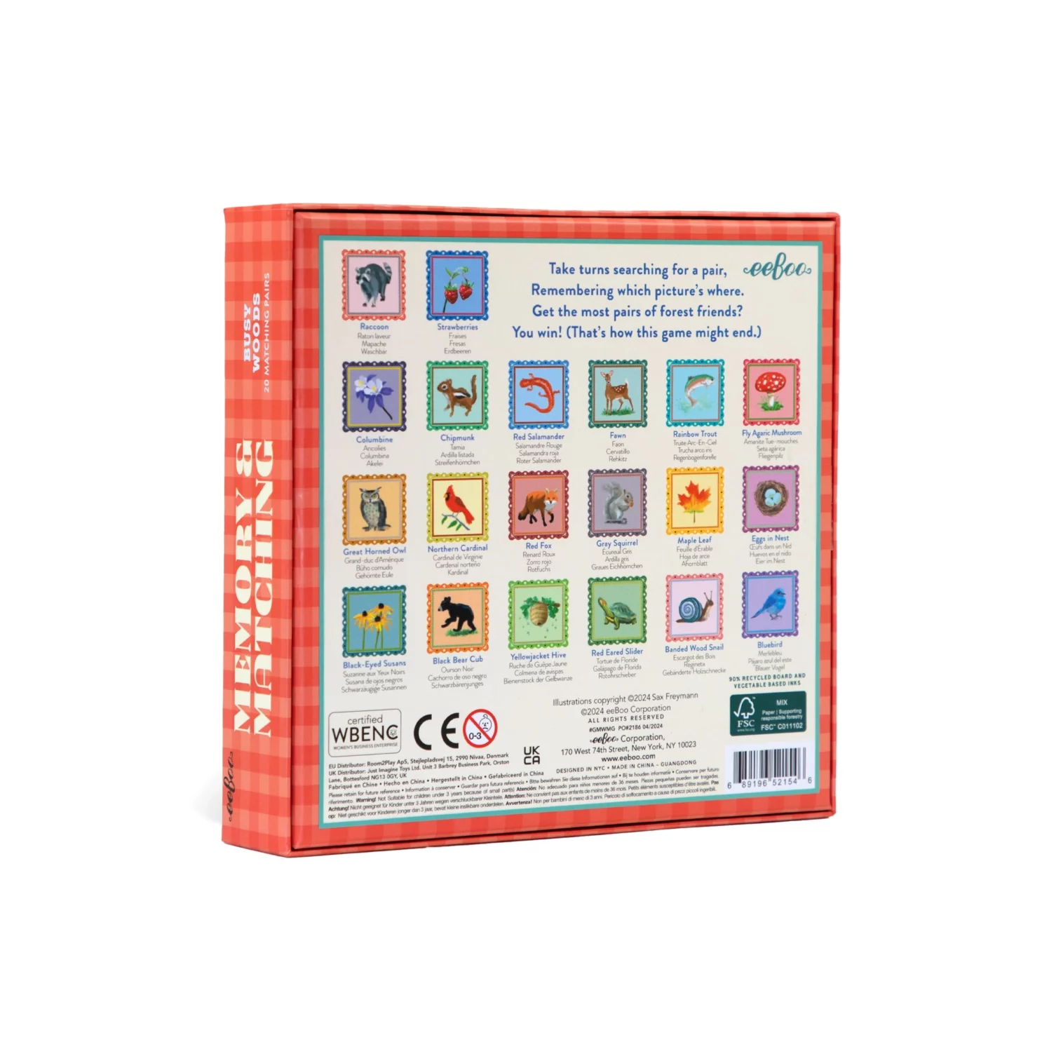 Ljúfar og mildar skógarverur vekja áhuga og þjálfa unga huga. Í spilinu eru 20 pör af skógardýrum, myndskreytt af Saxton Freymann.