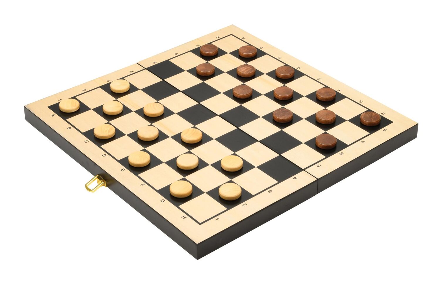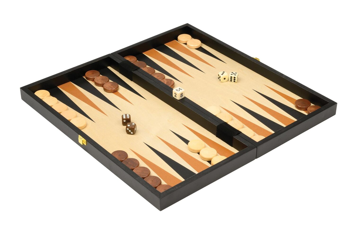 Laglegt sett með þremur klassískum spilum í einni öskju: Skák, backgammon (kotra, ef þú vilt), og damm. Leikborðið er hægt að brjóta saman og geyma mennina í því.