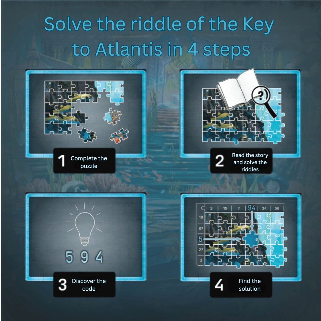 Fyrir ykkur liggja 7 gátur Atlantis, sem þið þurfið að leysa til að finna töfralykilinn og opna leiðina.