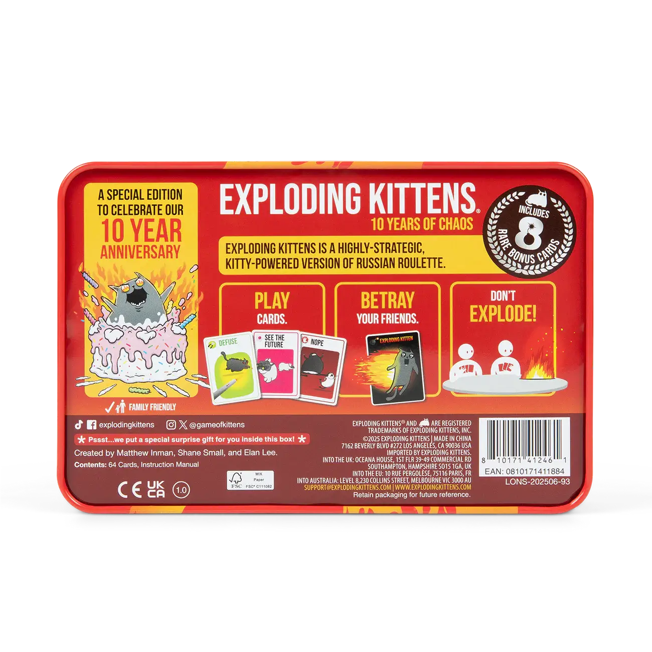 Þetta er 10 ára afmælisútgáfa af spilinu, sérstaklega fyrir safnara og harða Exploding Kittens aðdáendur.