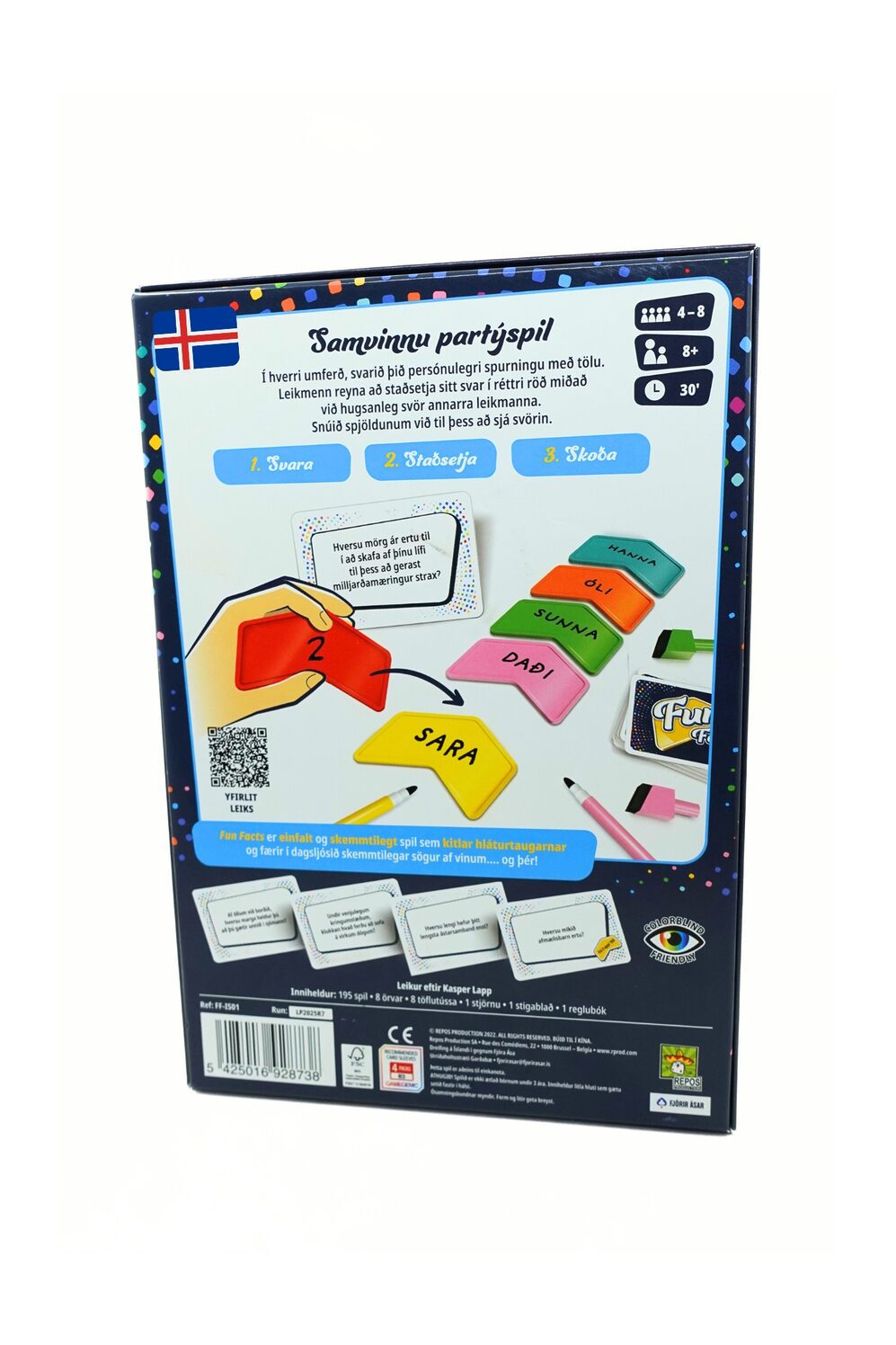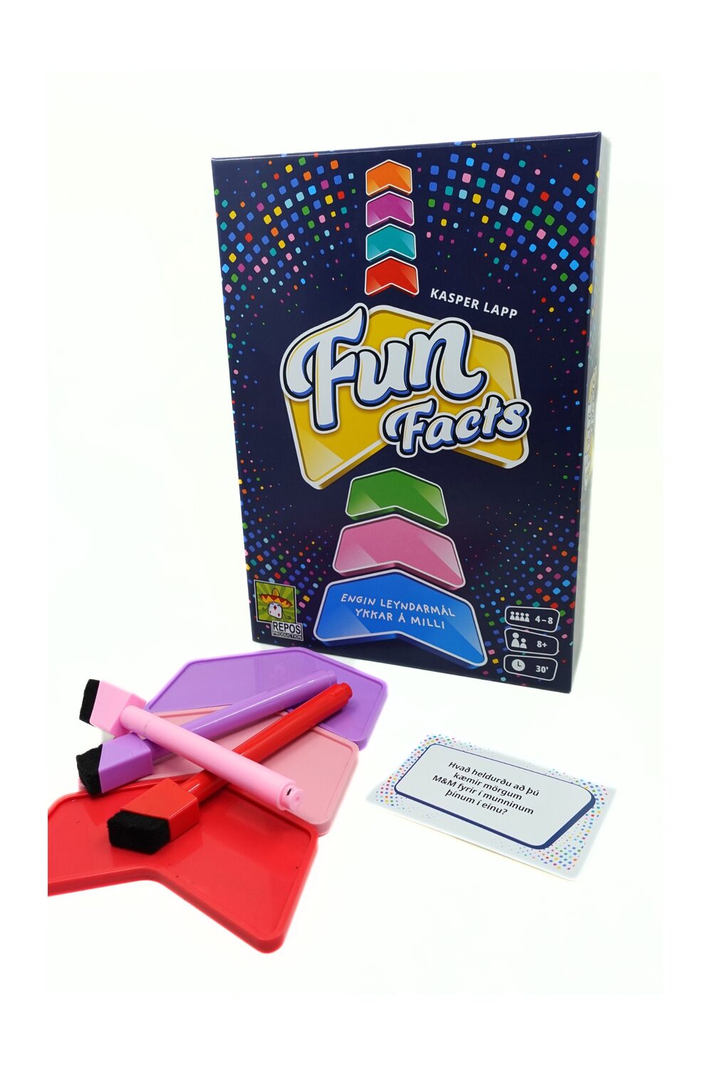 Í hverri umferð í Fun Facts er spurning sett á mitt borðið. Til dæmis: Hve langur er hinn fullkomni lúr? Hvert ykkar skrifar svarið sitt á lituðu píluna sína (svarið er alltaf tala á bilinu 1-100).