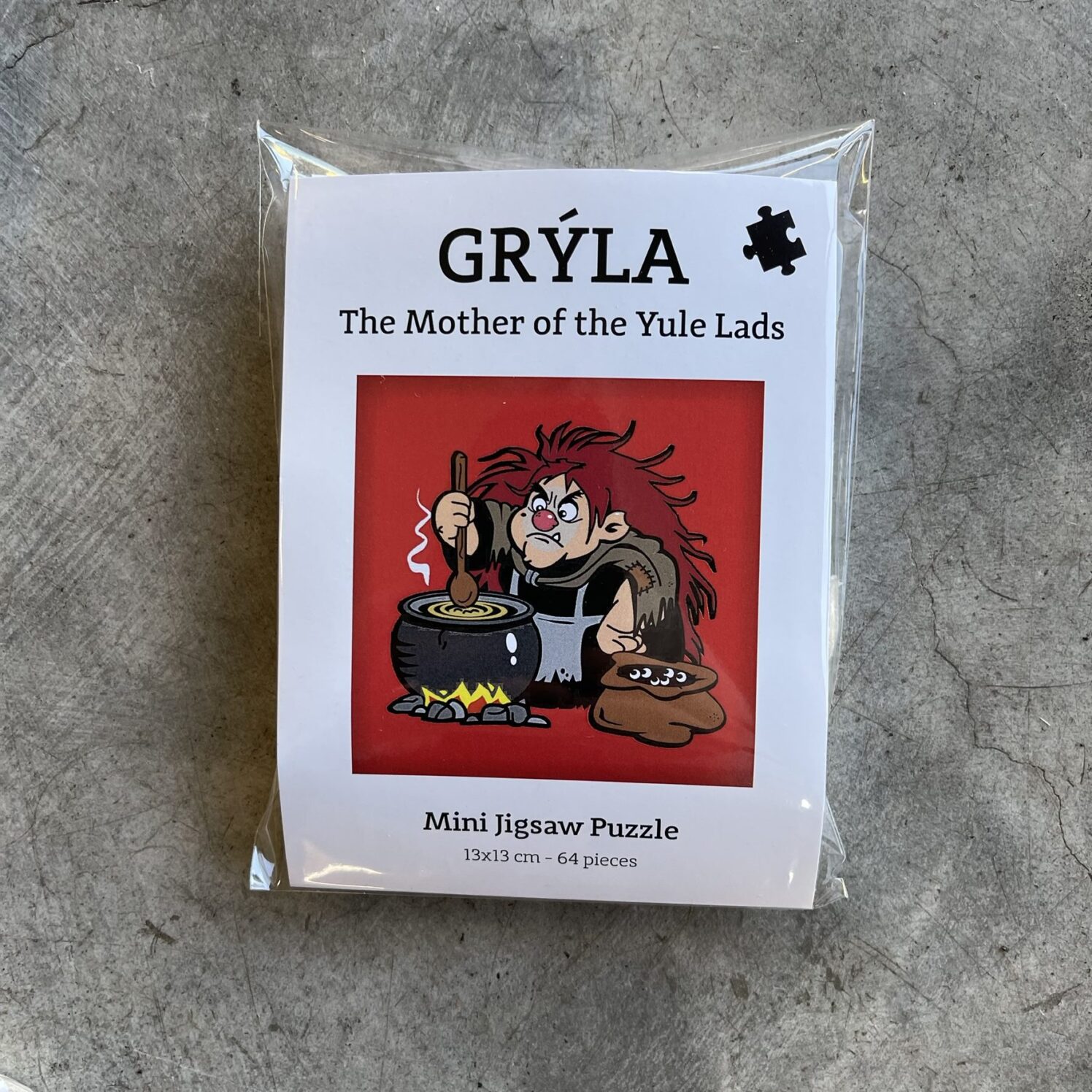 Grýlupúslið er mjög lítið, á við póstkort. Litlu púslin frá Hespuhúsinu eru fræðslupúsluspil en það fylgir með texti á ýmsum tungumálum í gegnum QR kóða um Grýlu. Prentaði textinn er á ensku en íslenskan aðgengileg með QR kóða ásamt dönsku, þýsku, frönsku, spænsku, og kínversku. Í pokanum er taupoki til að geyma púsluspilið í.