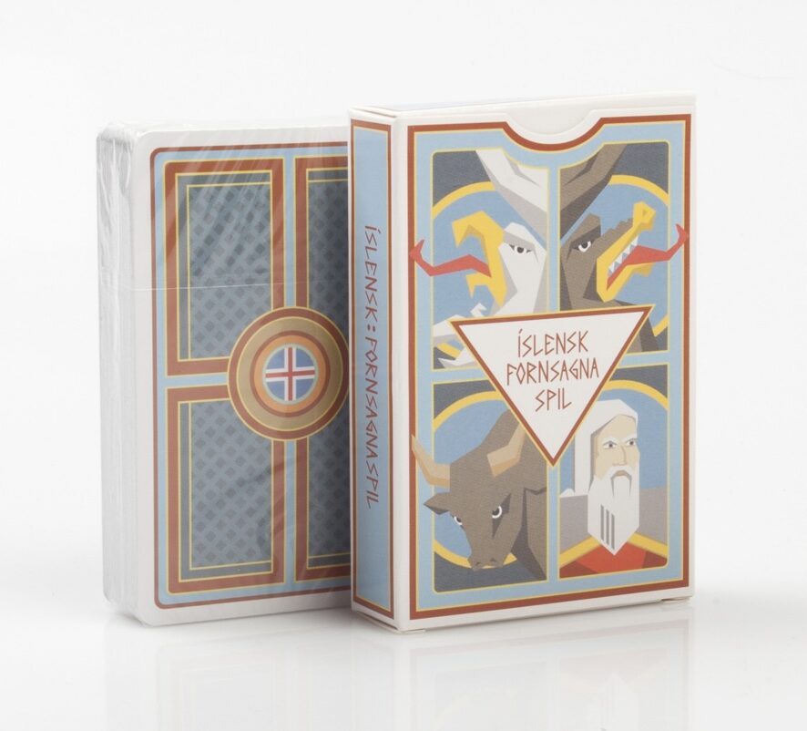 Íslensk mannspil með myndum í fornsagnastíl, að fyrirmynd spila Tryggva Magnússonar frá árinu 1930.