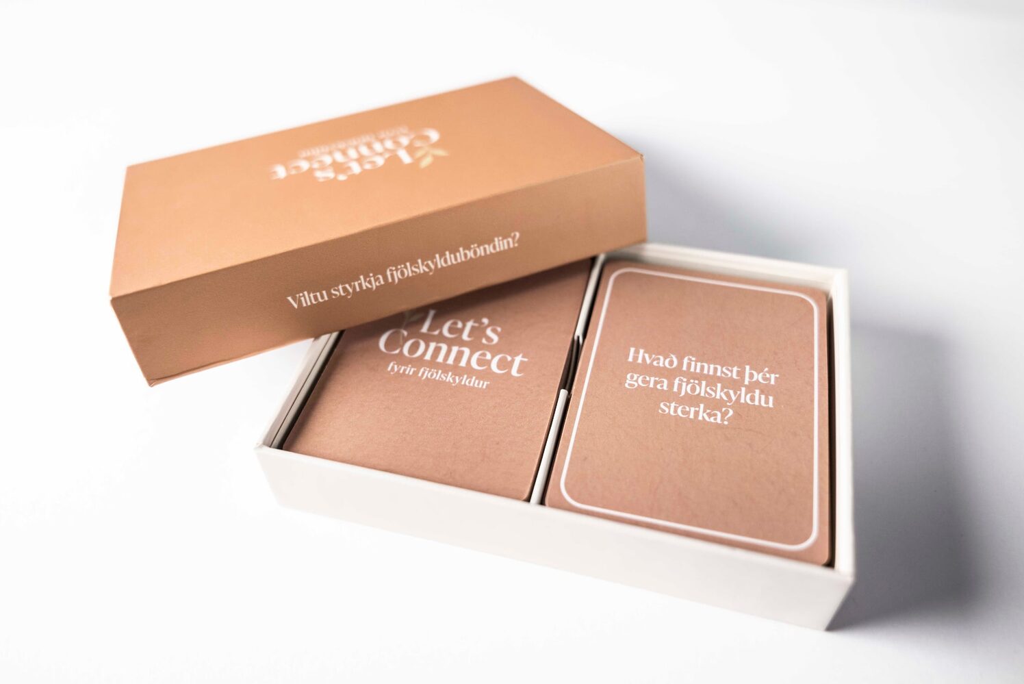 Let’s Connect: Fyrir fjölskyldur skapar rými fyrir fjölskyldumeðlimi til að kynnast betur; styrkja samkennd og tengjast hvert öðru í gegnum samtal þar sem áhersla er ekki síður á hlustun en það að svara spurningum.