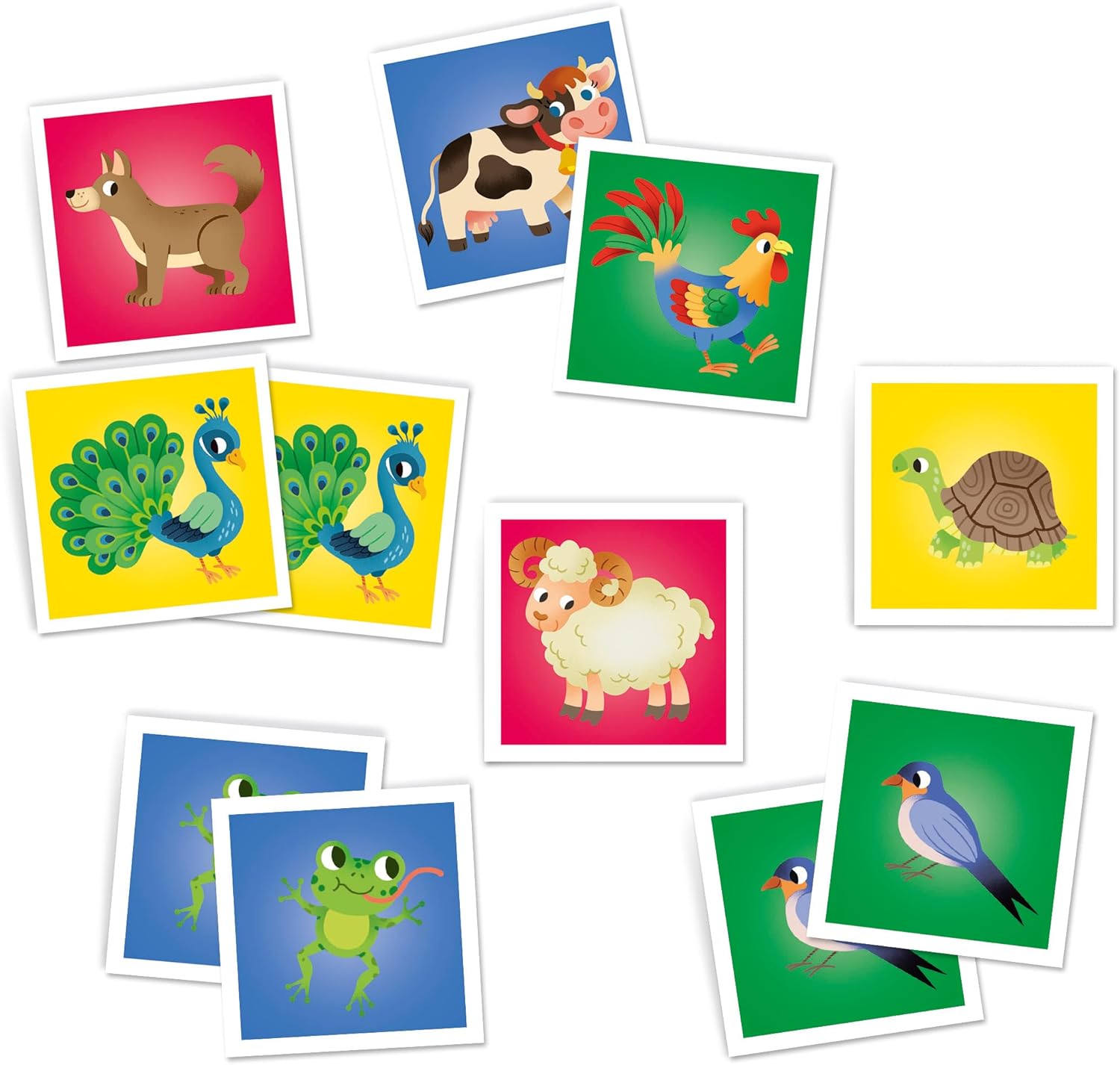 Samstæðuspil með 24 pörum af myndum með dýrunum í sveitinni.