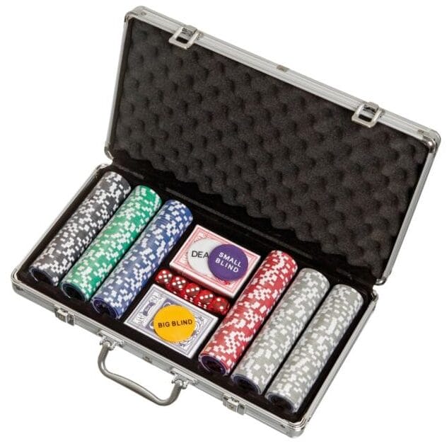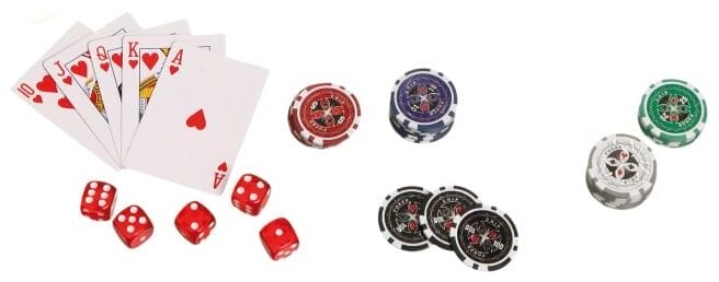 - 2 plaststokkar, 5 teningar og gjafaraflís, big blind og small blind flísar.