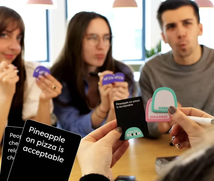 Í hverri umferð les eitt ykkar umdeilda skoðun upphátt. Hin eiga að ákveða í leyni hvort þau eru sammála eða ósammála og um leið giska á hve mörg eru sömu skoðunar. Ef þú getur giskað réttilega á hve mörg ykkar það eru, þá færðu 1 stig. Fyrst til að fá 8 stig sigrar.