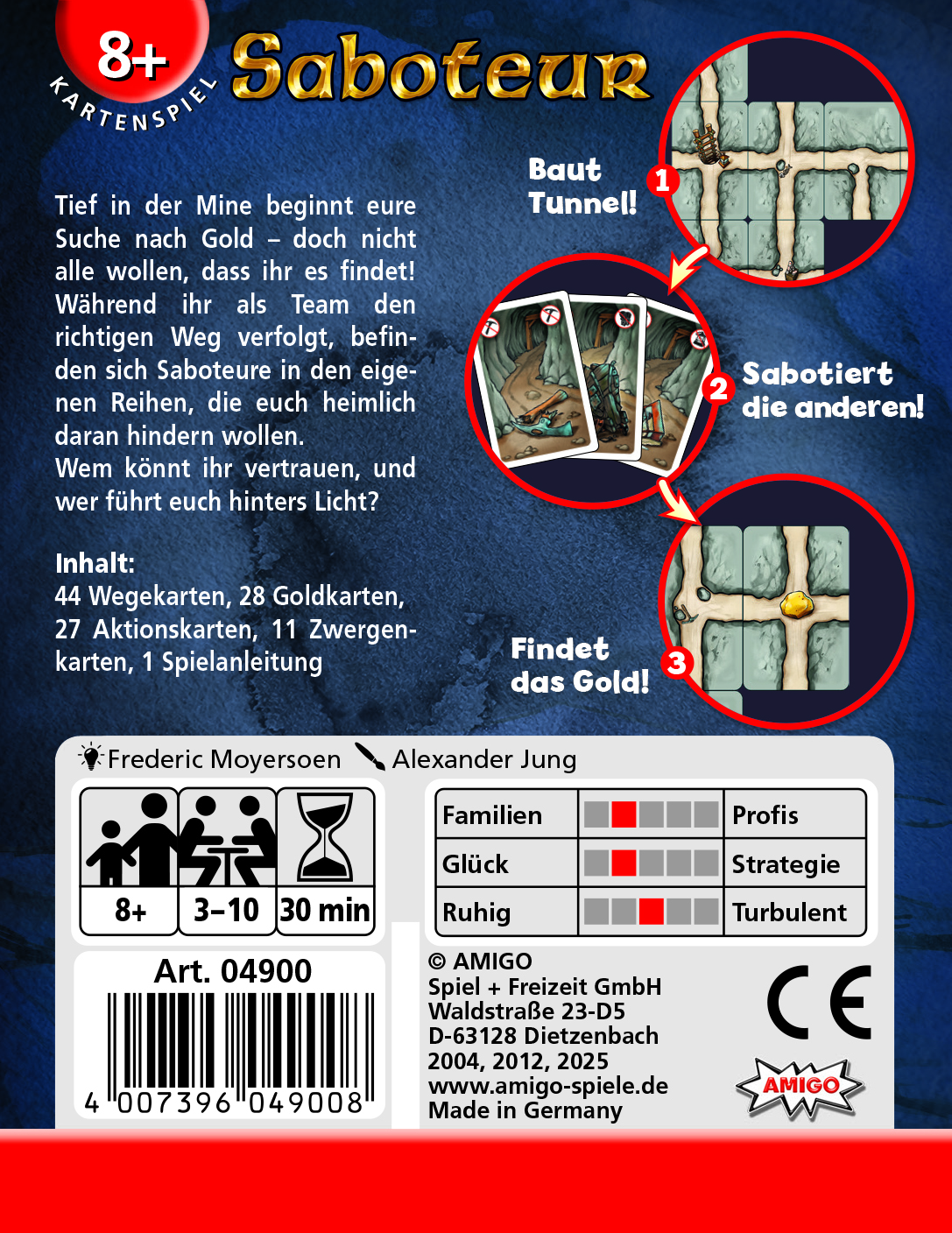 Frábært spil fyrir hóp, sérstaklega með krökkum. Allir spilarar eru dvergar að leita að gullmolanum við enda námunnar og þurfa að vinna saman í að grafa göngin sem leiða að gullmolanum. En í hópnum geta leynst skemmdarvargar sem vilja ekki að gullið sé fundið. Þeir geta þá eyðilagt fyrir hinum, skemmt verkfæri hinna dverganna, afvegaleitt eða skemmt göngin. Galdurinn er þó sá að vera lúmskur og ekki láta hina dvergana fatta að þú sért skemmdarvargurinn því þá geta þeir unnið saman að því að loka á þig. Stigakerfið er svolítið gallað og það er mjög erfitt að vera góður skemmdarvargur og vinna leikinn sem slíkur, en þetta spil getur skapað spennu og skemmtilegan kíting.