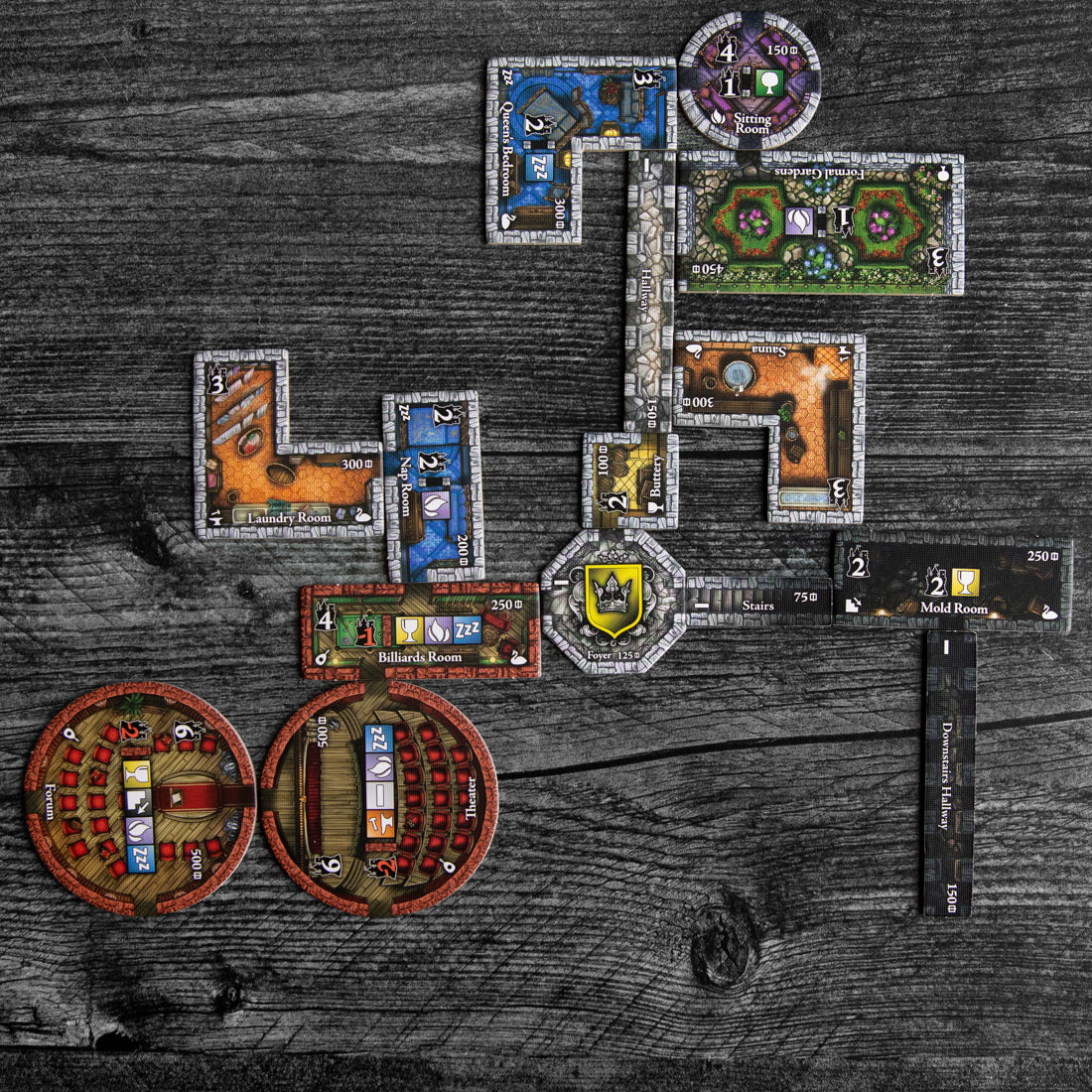Í spilinu byrjið þið með einfalt anddyri. Eitt ykkar tekur að sér að vera Meistarinn í umferðinni, og velur sett af herbergjum sem hægt er að byggja í umferðinni, og verðið á þeim. Meistarinn fær hins vegar að velja síðastur allra, og allir borga Meistaranum fyrir herbergið sem þau velja. Þegar þú bætir herbergi við kastalann þinn, þá færðu stig eftir stærð og tegund herbergisins, og mögulega bónusa fyrir staðsetninguna á herberginu. Þegar herbergi er klárað, og allir útgangar þess leiða í aðrar vistarverur kastalans, þá færðu ein af sjö sérstökum verðlaunum.