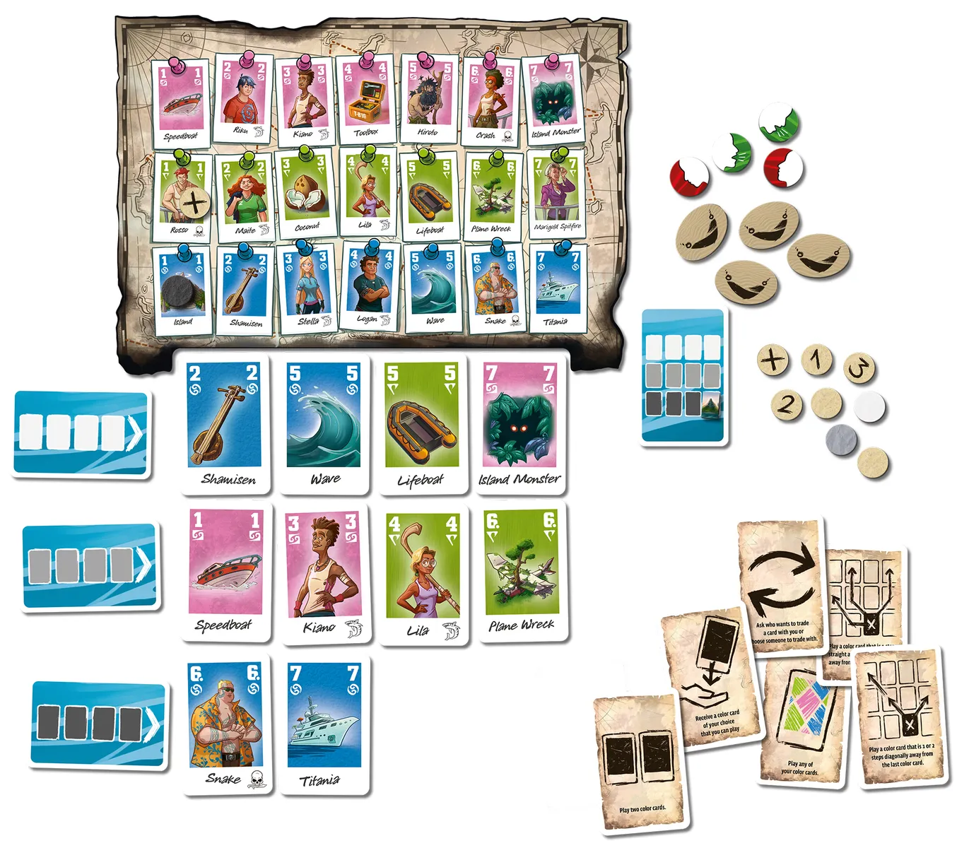 Þið byrjið spilið strönduð á eyðieyju og þurfið að finna leið ykkar um eyjuna saman í 35 verkefnum. Þið spilið út spilum — án þess að tala saman — þar til þið leysið verkefnið. Leikborð, merklar, og sérstök spil hjálpa ykkur að halda utan um spilið og möguleikana í gegnum spilið.